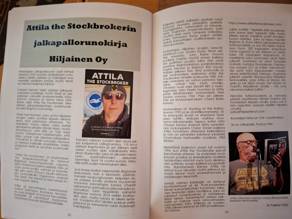Jalkapallo lehti Supporter teki koko aukeaman jutun Attila The Stockbroker runokirjasta